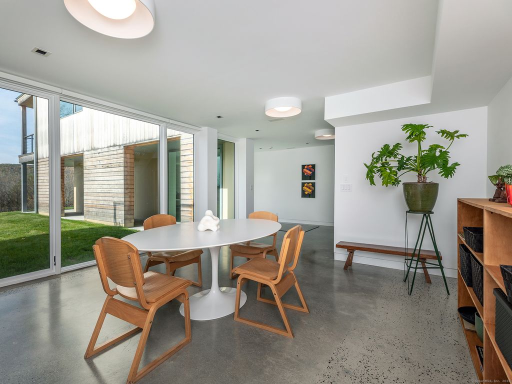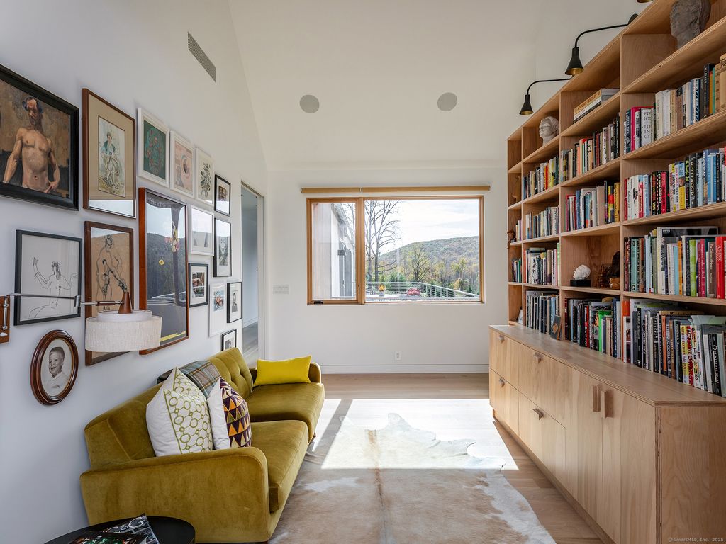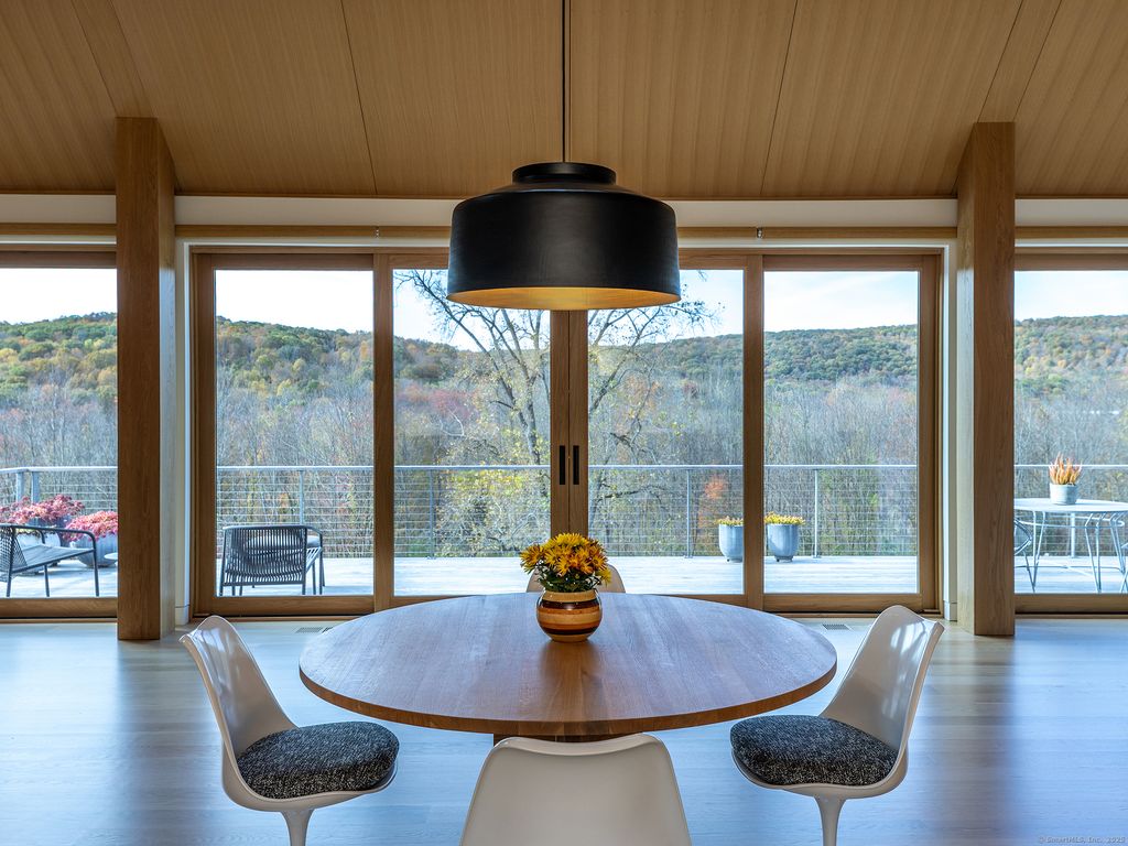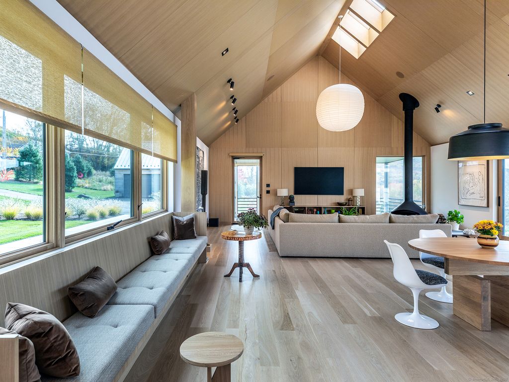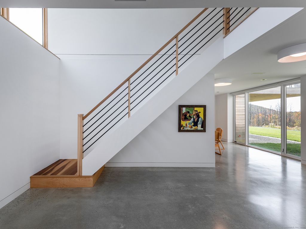 Escape to your sunlight-filled, modern architectural retreat on a winding country road in Merryall, just minutes from Lake Waramaug Country Club, Bulls Bridge Golf Club, and the uber-chic villages of New Preston, Washington and Kent. Using the American barn as his inspiration, a well-known designer custom built this Litchfield County home for his own use. The house is sited in a large open field, perfectly situated to offer panoramic rolling hill views from every room – stunning in all seasons. The open-concept main floor features spacious living areas, an oak paneled Great Room with soaring ceilings, a screened porch for outdoor enjoyment, a primary bedroom suite, office, and flexible room -ideal as a second bedroom, den, or gym. The lower level includes a media/game room, second bedroom and bath, large laundry room, plus ample unfinished space if expansion is desired. Every aspect of this home, from its architecture to the landscape design to its curated furnishings is crafted for both visual impact and relaxed, comfortable living. The 60-foot Gunite heated pool is spectacular. Luxury finishes like radiant heated floors, standing seam metal roof, custom cabinetry and built ins, oak and birch paneling, high-end appliances, oversized 2 car garage, discrete solar array and multiple terraces complete the package. Absolutely mint condition. Recently featured in Dwell magazine and CT Cottages & Gardens.