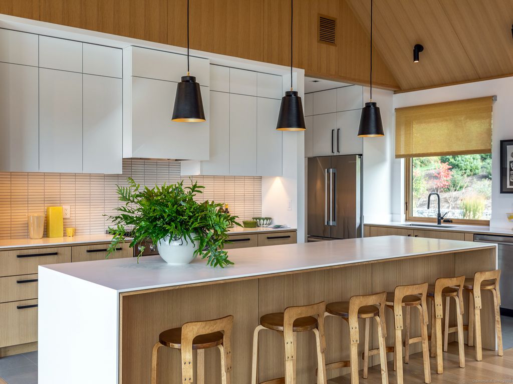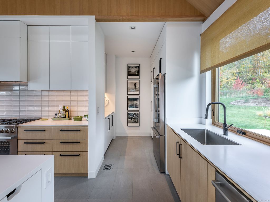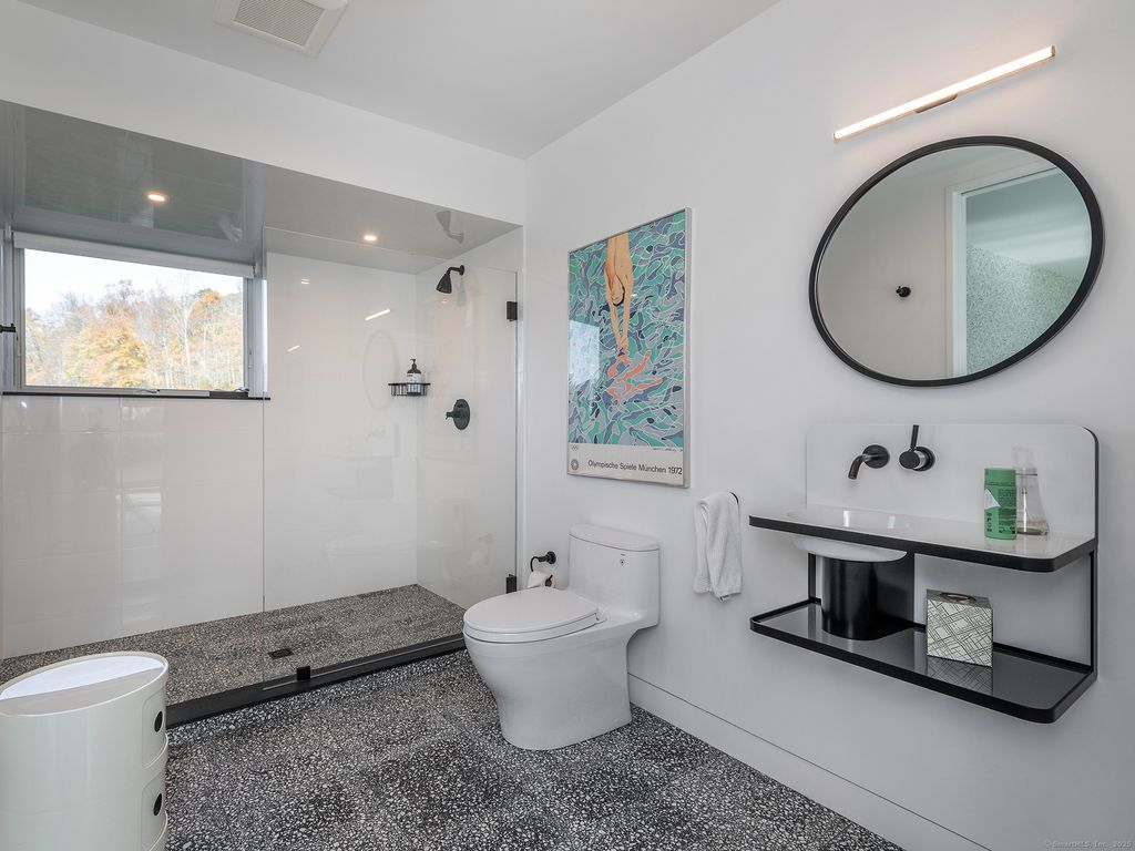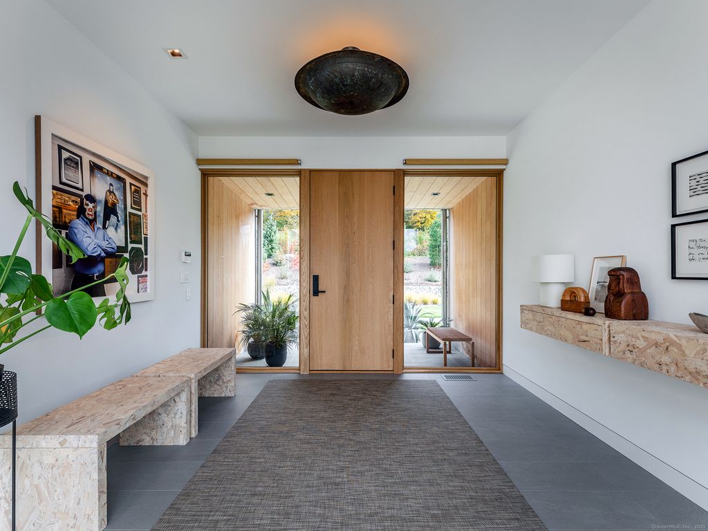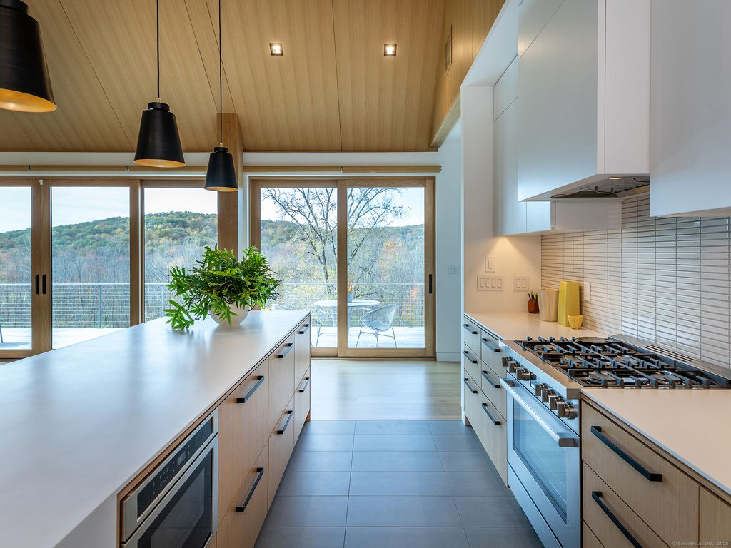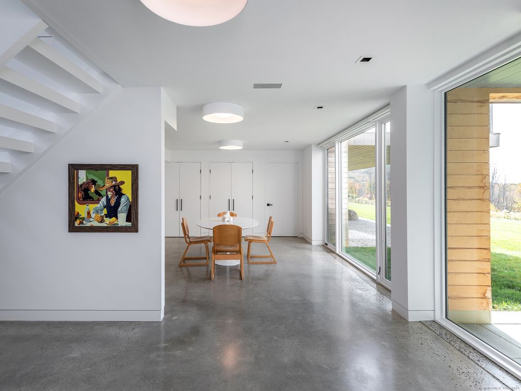 Escape to your sunlight-filled, modern architectural retreat on a winding country road in Merryall, just minutes from Lake Waramaug Country Club, Bulls Bridge Golf Club, and the uber-chic villages of New Preston, Washington and Kent. Using the American barn as his inspiration, a well-known designer custom built this Litchfield County home for his own use. The house is sited in a large open field, perfectly situated to offer panoramic rolling hill views from every room – stunning in all seasons. The open-concept main floor features spacious living areas, an oak paneled Great Room with soaring ceilings, a screened porch for outdoor enjoyment, a primary bedroom suite, office, and flexible room -ideal as a second bedroom, den, or gym. The lower level includes a media/game room, second bedroom and bath, large laundry room, plus ample unfinished space if expansion is desired. Every aspect of this home, from its architecture to the landscape design to its curated furnishings is crafted for both visual impact and relaxed, comfortable living. The 60-foot Gunite heated pool is spectacular. Luxury finishes like radiant heated floors, standing seam metal roof, custom cabinetry and built ins, oak and birch paneling, high-end appliances, oversized 2 car garage, discrete solar array and multiple terraces complete the package. Absolutely mint condition. Recently featured in Dwell magazine and CT Cottages & Gardens.