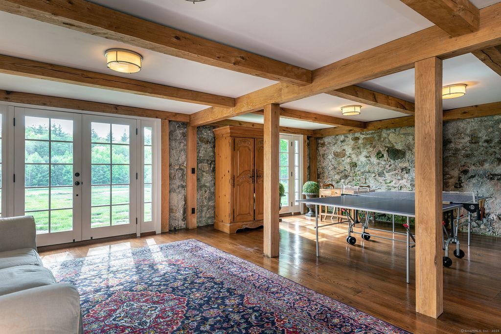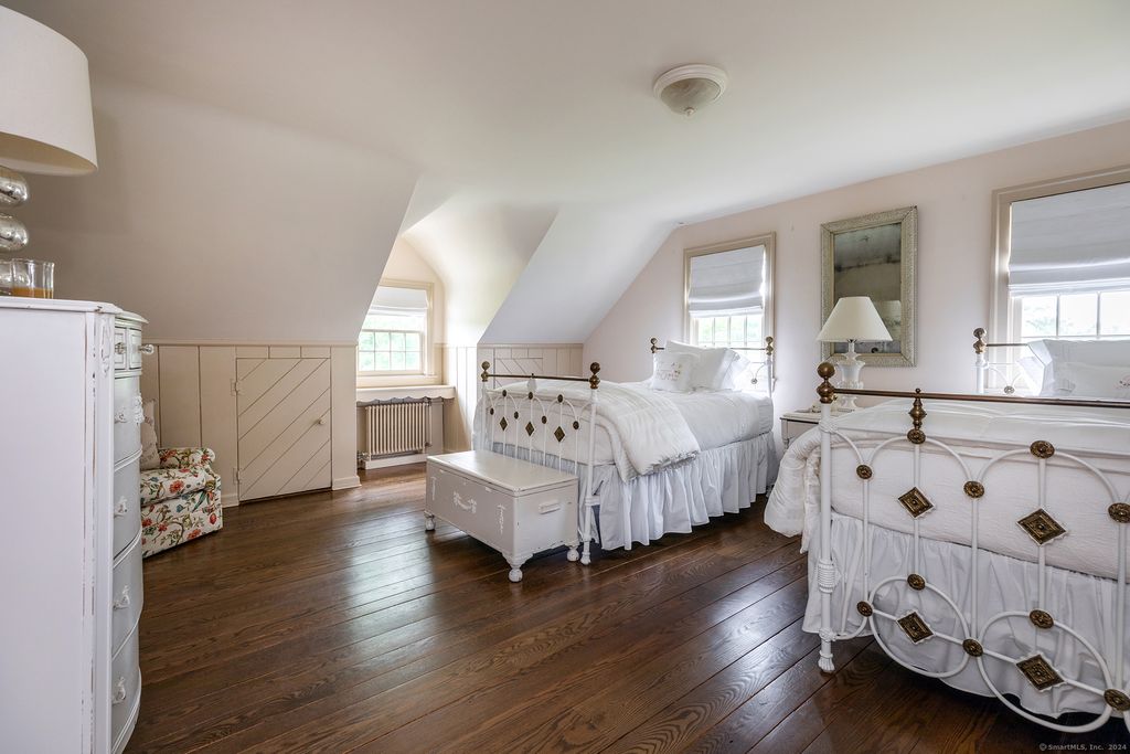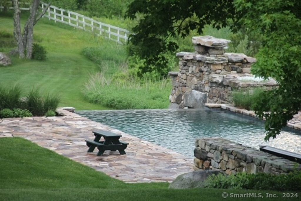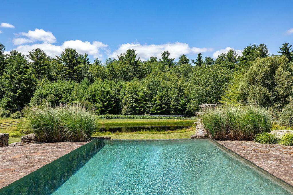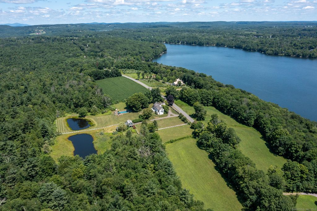 12-Acre Lakefront- Classic New England Estate. 100 ft. frontage directly on Woodridge Lake, with rights to build a boat dock, deck and cooking area at lake’s edge and enjoy water activities and picturesque views. Discover the epitome of charm and grace in this magnificent home with 3 wood-burning fireplaces. 13 total rooms including 7 bedrooms with 7 full & 2 1/2 baths. With two ponds, open meadows and lawn, the property offers tranquility and privacy. Be immersed in a private outdoor oasis featuring an exquisite Gunite pool & spa with a mesmerizing 6′ infinity waterfall. Enjoy cozy evenings by the outdoor stone fireplace. Bordering both Mohawk State Forest (4,000+/- Acres) and Wyantenock State Forest (4,000+/- Acres), the property seamlessly merges with the beauty of nature, providing unparalleled serenity and assuring forever preservation from development. Once home to five horses, the horse barn and paddocks add a touch of rustic charm. Ideal for horse enthusiasts. Ski at nearby Mohawk Mountain Ski Resort (with Night Skiing), a mere 8-minute drive. Rare Offering with Potential Waterfront Building Site on Quiet Country Road yet, 10 minutes to Litchfield Town Center and its world class restaurants, shops and services.