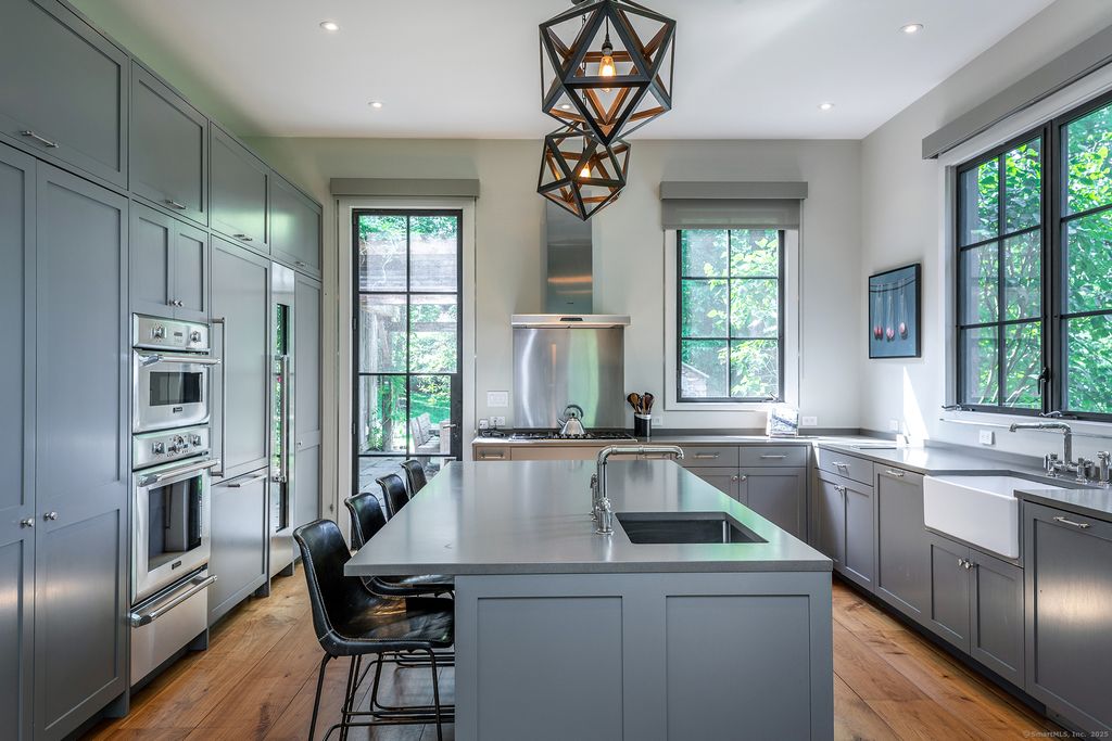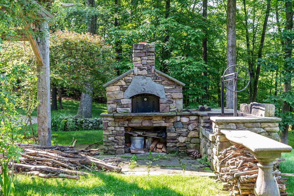 Stunning uber luxe retreat built to the highest standards in premier location. 7 bedrooms, 8 Full and 1 half Waterworks bathrooms. Long driveway. Combined Living/Dining with wood burning fireplace, steel French doors to outdoor stone terrace. Eat-in Kitchen. Enclosed screened porch with fireplace. Library/Home Office with vaulted ceiling, antique beams, built-in bookshelves and wood burning fireplace. Family Room. Gym. Wine cellar. Outdoor fieldstone pizza oven and Argentinian grille. Dining pergola with flagstone terrace. Gunite swimming pool with stone terrace. Backup generator. Greenhouse. Mature plantings. Apple orchard. Fenced cutting garden. Stone walls. 14.91+/- acres. Total privacy. Must See.